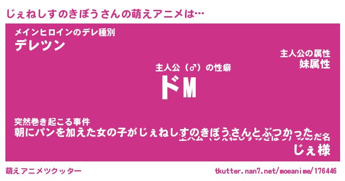 | 女子向けラノベタイトル風あだ名 | 『(仮)じぇねしすのきぼうのやんごとなき事情』 |