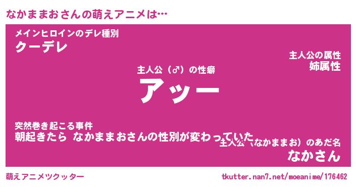 | 男性向けラノベタイトル風あだ名 | 『ナカママオアートオンライン』 |