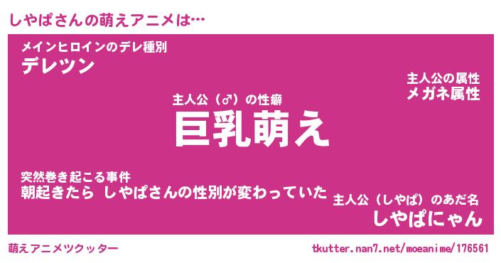 | 男性向けラノベタイトル風あだ名 | 『しやぱの憂鬱』 |