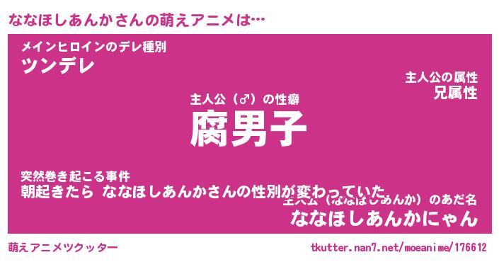 | 男性向けラノベタイトル風あだ名 | 『ナナホシアンカアートオンライン』 |