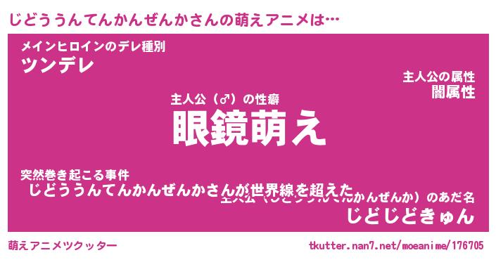 | 男性向けラノベタイトル風あだ名 | 『じどううんてんかんぜんかの憂鬱』 |