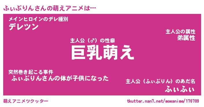 | 男性向けラノベタイトル風あだ名 | 『ふぃぶりんの憂鬱』 |