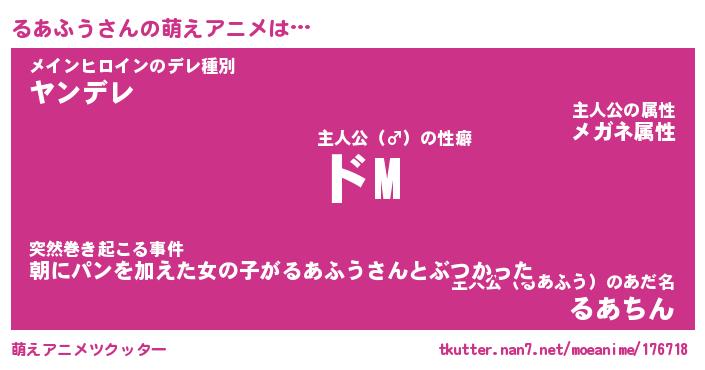 | 男性向けラノベタイトル風あだ名 | 『るあふうの憂鬱』 |