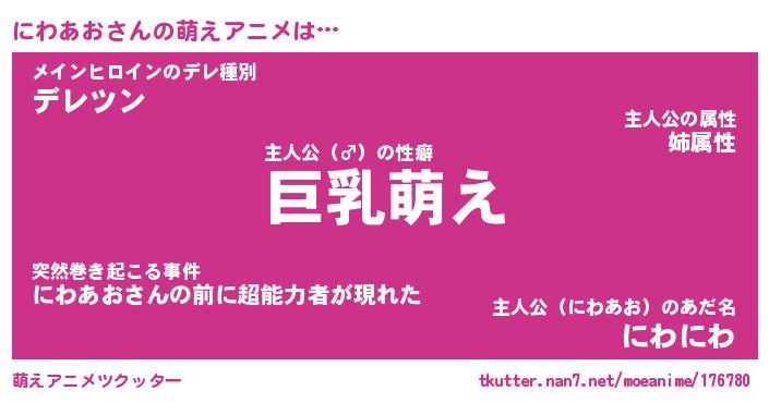 | 男性向けラノベタイトル風あだ名 | 『にわあおの憂鬱』 |