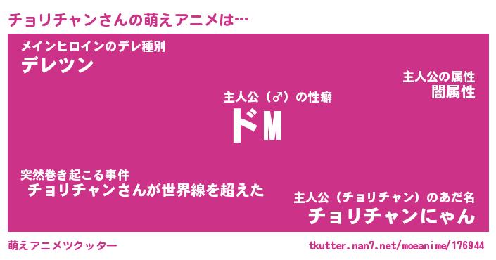 | 女子向けラノベタイトル風あだ名 | 『(仮)チョリチャンのやんごとなき事情』 |