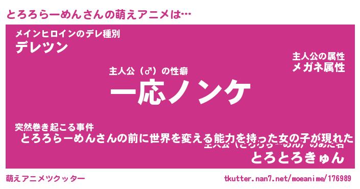 | 女子向けラノベタイトル風あだ名 | 『誰かこのとろろらーめんを説明してください! ~契約から始まるウェディング~』 |