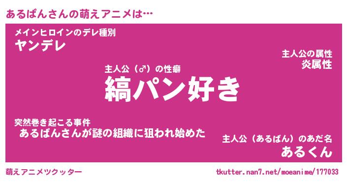 | 男性向けラノベタイトル風あだ名 | 『あるばんの憂鬱』 |