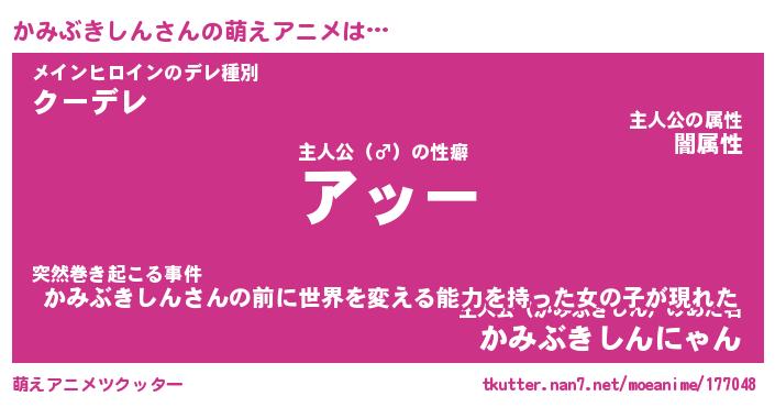 | 男性向けラノベタイトル風あだ名 | 『カミブキシンアートオンライン』 |