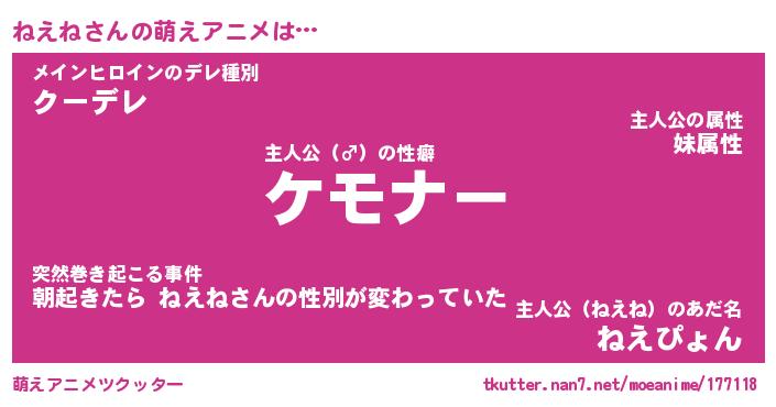 | ヘコむあだ名 | 『ねえにー』『豆乳』『ねえお』 |