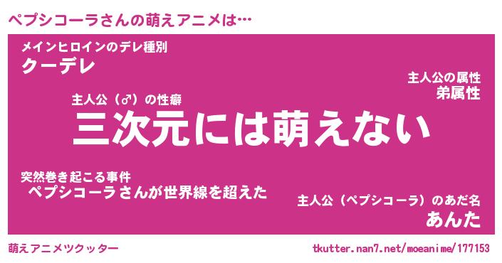 | 男性向けラノベタイトル風あだ名 | 『ペプシコーラアートオンライン』 |