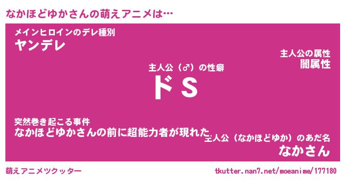 | 女子向けラノベタイトル風あだ名 | 『(仮)なかほどゆかのやんごとなき事情』 |