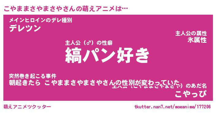 | 女子向けラノベタイトル風あだ名 | 『(仮)こやままさやまさやのやんごとなき事情』 |