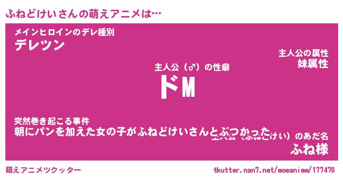 | 女子向けラノベタイトル風あだ名 | 『(仮)ふねどけいのやんごとなき事情』 |