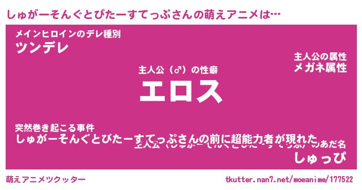 | 胡散臭い通販商品みたいなあだ名 | 『億万長者になれる水晶球…その名も「しゅがーそんぐとびたーすてっぷ」』 |