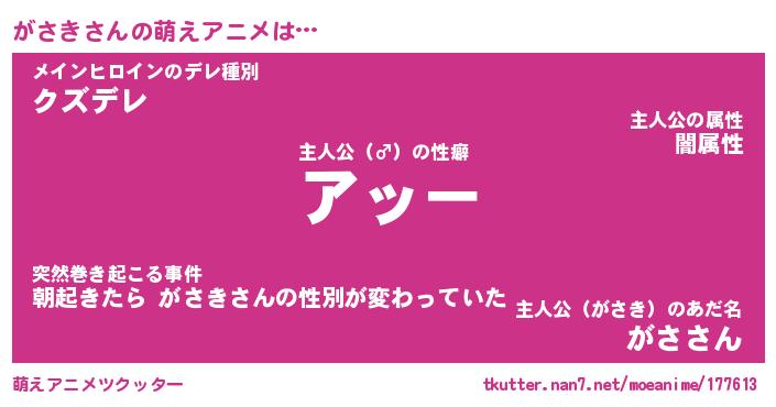 | 男性向けラノベタイトル風あだ名 | 『ガサキアートオンライン』 |