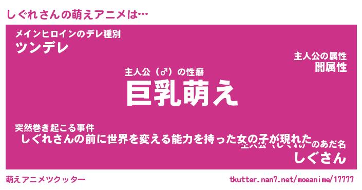 | 男性向けラノベタイトル風あだ名 | 『しぐれの憂鬱』 |