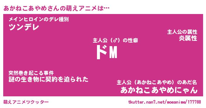 | 男性向けラノベタイトル風あだ名 | 『あかねこあやめの憂鬱』 |