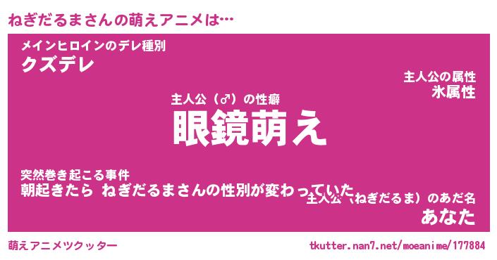 | 男性向けラノベタイトル風あだ名 | 『ねぎだるまの憂鬱』 |