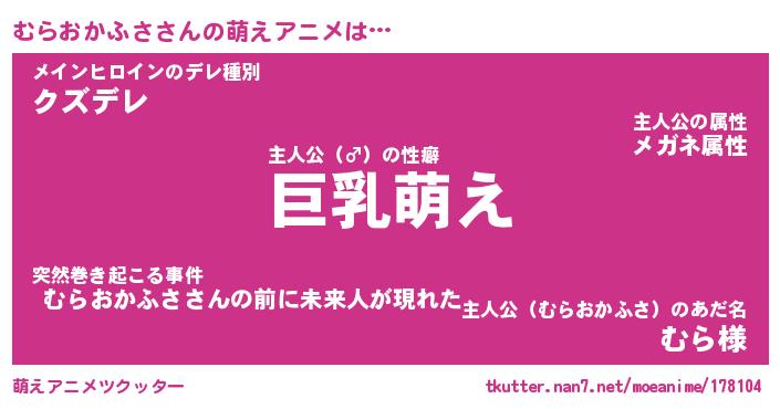 | 男性向けラノベタイトル風あだ名 | 『むらおかふさの憂鬱』 |