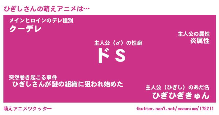 | 男性向けラノベタイトル風あだ名 | 『ひぎしの憂鬱』 |