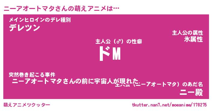 | 男性向けラノベタイトル風あだ名 | 『ニーアオートマタの憂鬱』 |