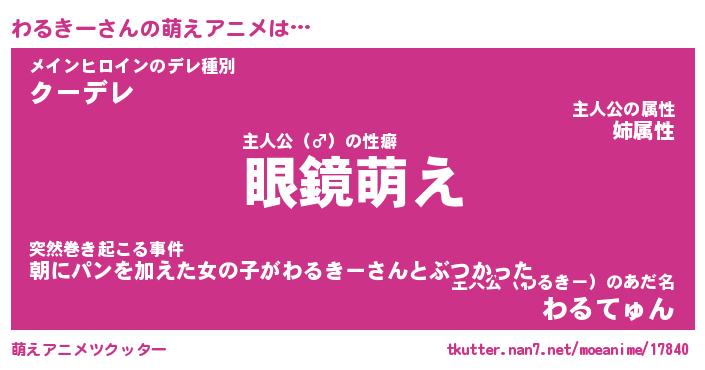 | 男性向けラノベタイトル風あだ名 | 『わるきーの憂鬱』 |