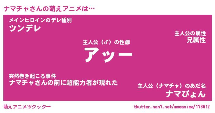 | 男性向けラノベタイトル風あだ名 | 『ナマチャアートオンライン』 |