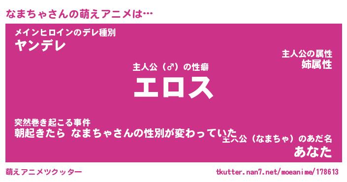 | 男性向けラノベタイトル風あだ名 | 『ナマチャアートオンライン』 |