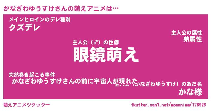 | 男性向けラノベタイトル風あだ名 | 『かなざわゆうすけの憂鬱』 |