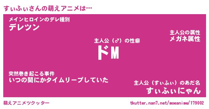 | 男性向けラノベタイトル風あだ名 | 『すぃふぃの憂鬱』 |