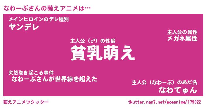 | 男性向けラノベタイトル風あだ名 | 『なわーぶの憂鬱』 |