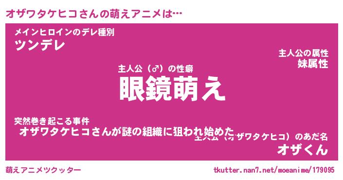 | 男性向けラノベタイトル風あだ名 | 『オザワタケヒコの憂鬱』 |