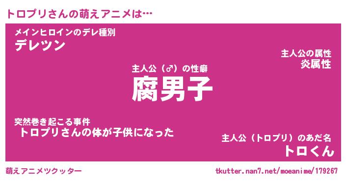 | 男性向けラノベタイトル風あだ名 | 『トロプリアートオンライン』 |
