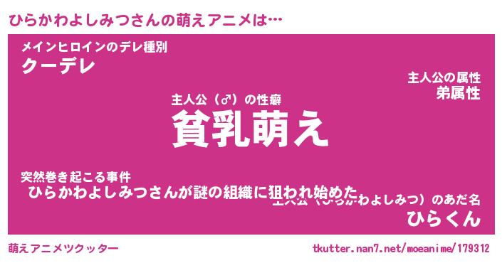 | 女子向けラノベタイトル風あだ名 | 『(仮)ひらかわよしみつのやんごとなき事情』 |
