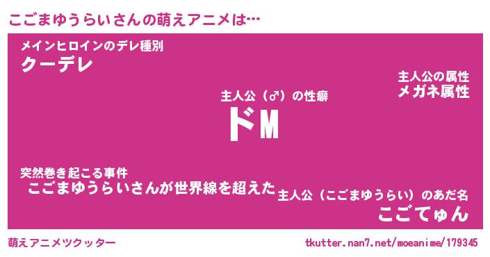 | 女子向けラノベタイトル風あだ名 | 『(仮)こごまゆうらいのやんごとなき事情』 |