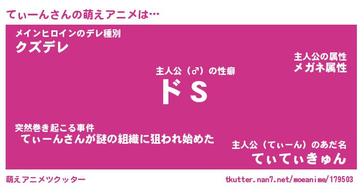 | 男性向けラノベタイトル風あだ名 | 『てぃーんの憂鬱』 |