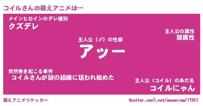 | 男性向けラノベタイトル風あだ名 | 『コイルアートオンライン』 |