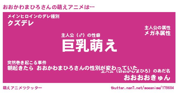 | 男性向けラノベタイトル風あだ名 | 『おおかわまひろの憂鬱』 |