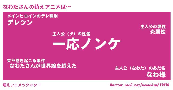 | 男性向けラノベタイトル風あだ名 | 『ナワタアートオンライン』 |