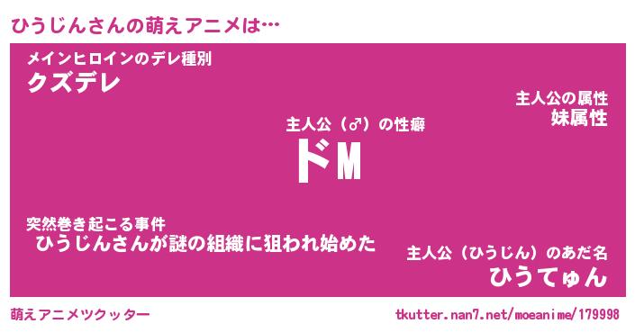 | 男性向けラノベタイトル風あだ名 | 『ひうじんの憂鬱』 |