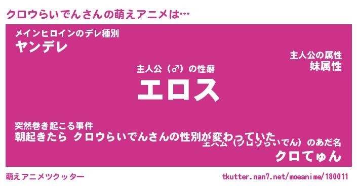 | 2回繰り返すあだ名 | 『クロクロ』『ククロロ』『うろうろ』 |