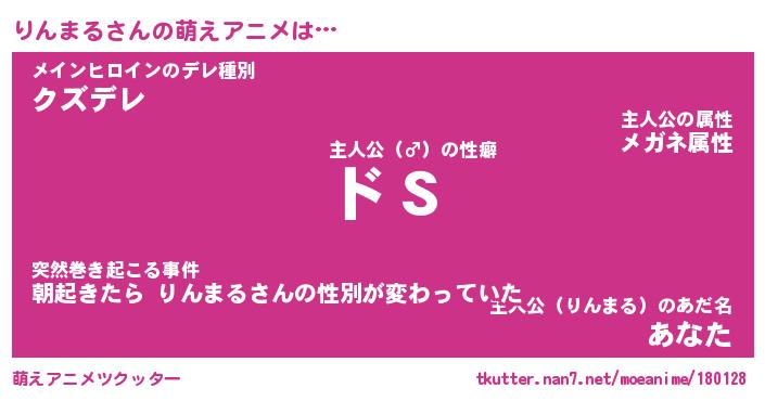 | 女子向けラノベタイトル風あだ名 | 『(仮)りんまるのやんごとなき事情』 |