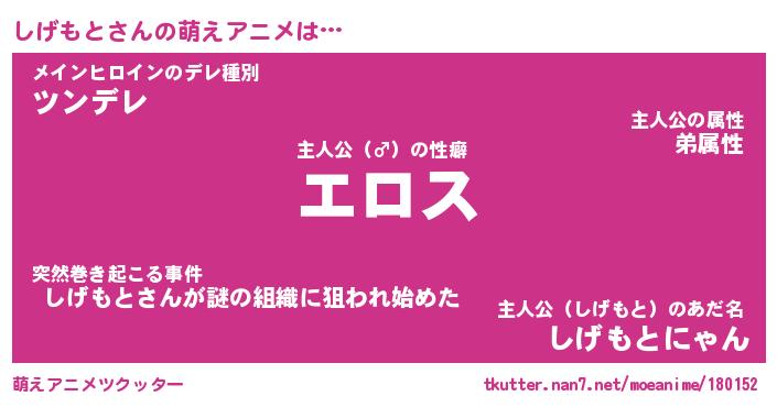 | 男性向けラノベタイトル風あだ名 | 『シゲモトアートオンライン』 |