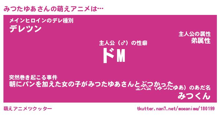 | 男性向けラノベタイトル風あだ名 | 『みつたゆあの憂鬱』 |