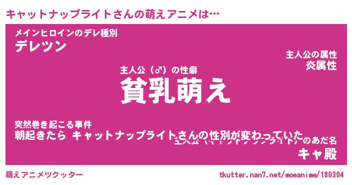 | 男性向けラノベタイトル風あだ名 | 『キャットナップライトの憂鬱』 |