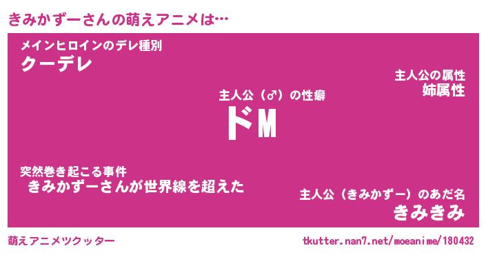 | 男性向けラノベタイトル風あだ名 | 『きみかずーの憂鬱』 |