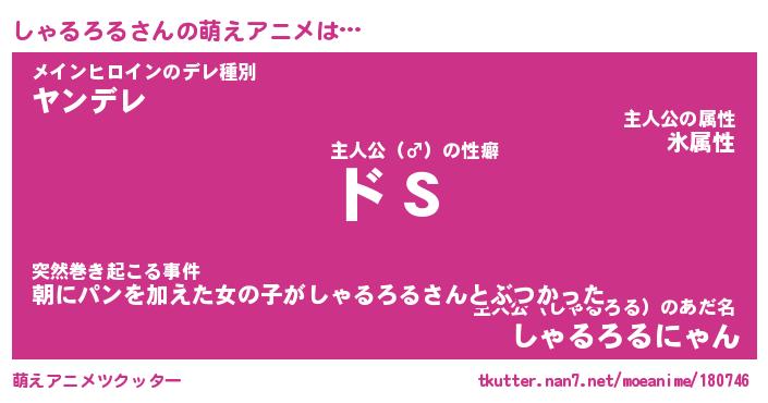 | 女子向けラノベタイトル風あだ名 | 『(仮)しゃるろるのやんごとなき事情』 |