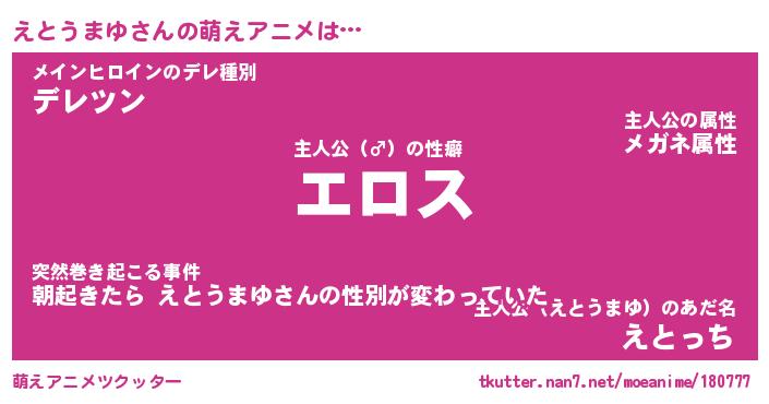 | 男性向けラノベタイトル風あだ名 | 『エトウマユアートオンライン』 |