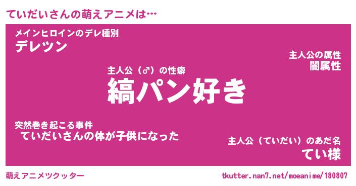 | 男性向けラノベタイトル風あだ名 | 『ていだいの憂鬱』 |