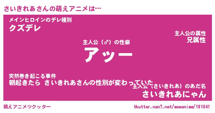 | 男性向けラノベタイトル風あだ名 | 『サイキレアアートオンライン』 |